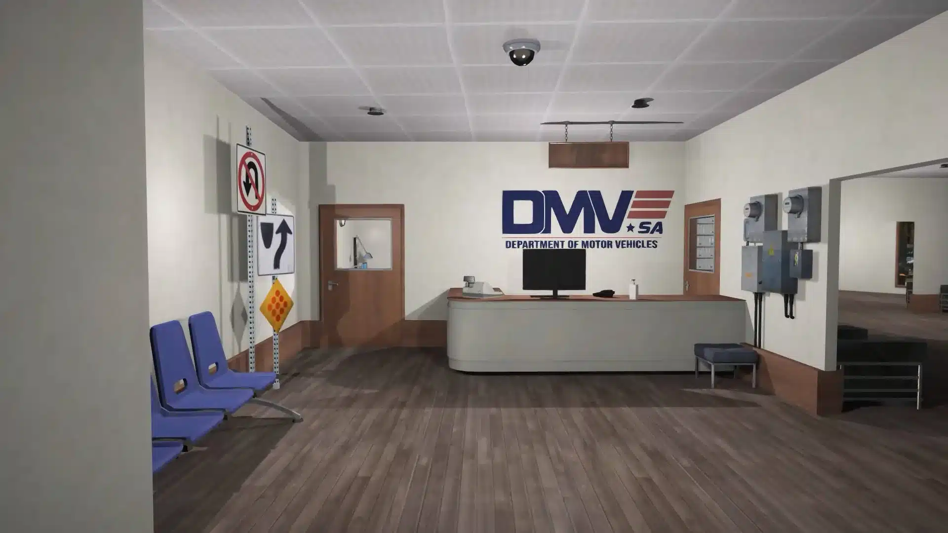 - Realistic DMV Interior: A detailed DMV office complete with reception, waiting areas, and test facilities.